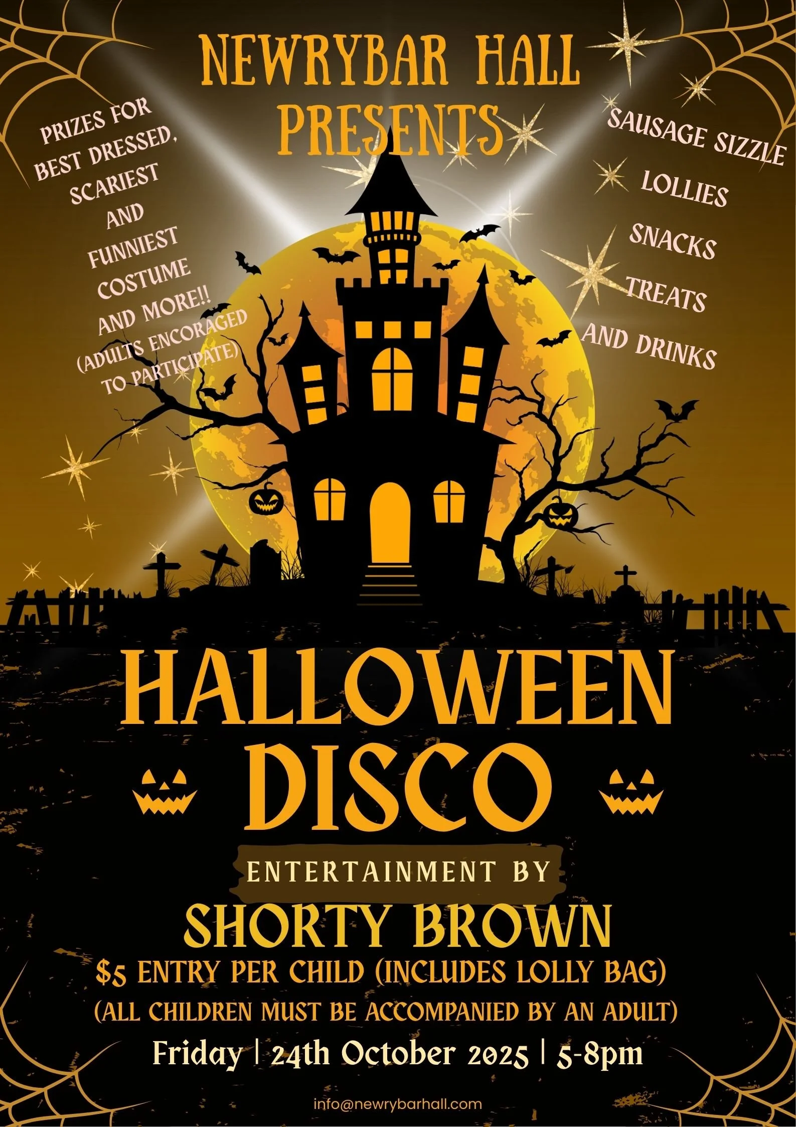 Annual Halloween Disco Friday, October 24, 2025 5:00 PM 8:00 PM 17:00 20:00 Newrybar Community Hall 13/15 Old Pacific Highway Newrybar, NSW, 2479 Australia (map) Google Calendar ICS